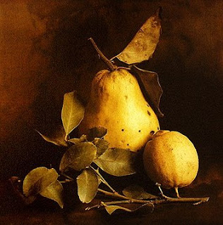 I’ve decided that the only sane reason to blog is a greater glut of pumpkins, apples, and medlars than words. In my search for something besides jelly to make from quinces, I’ve come across a terrific cookery blog, tiny banquet committee. (Her voice is as good as her recipes, maybe even better.) Don’t be surprised if I start blogging more about food in future. My eating obsessions have been noticed before and extend well into my fiction. In fact, my favourite metaphors are edible (metaphorically speaking).